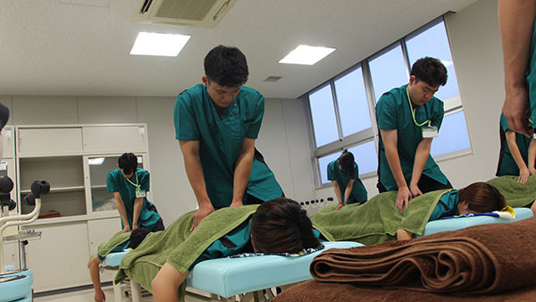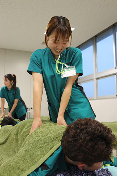 【東洋医療総合学科】1年生 指圧基礎実技の授業