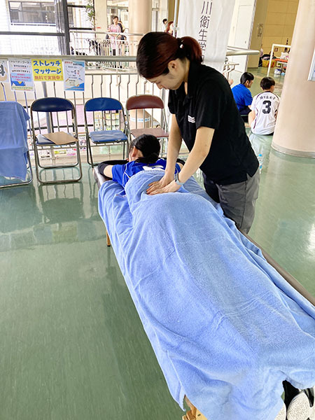 試合の間の休憩時間や試合後のケアに、高校生も一般の方もブースをご利用いただけました。
