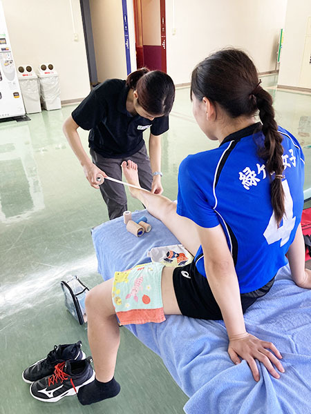 体験者の中には、試合前に足首の痛みでテーピングを希望する方も来ていました。