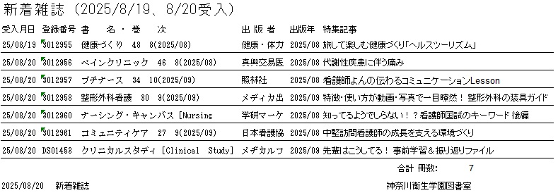 新着雑誌のお知らせ(2025/8/19、8/20受入)