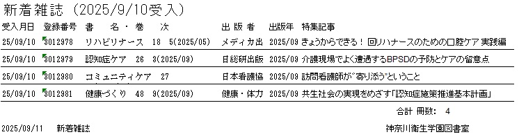 新着雑誌のお知らせ(2025/9/13、9/17受入)