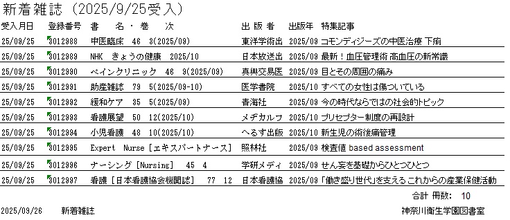新着雑誌のお知らせ(2025/9/13、9/17受入)
