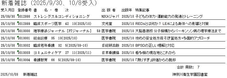 新着雑誌のお知らせ(2025/9/30、10/8受入)