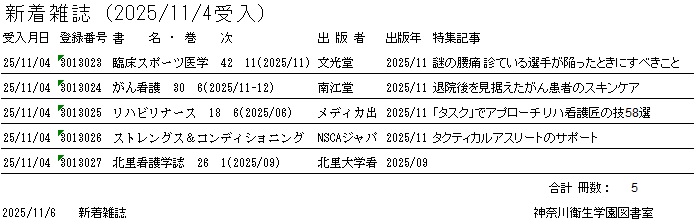 トップ 図書室 図書室からのお知らせ 新着雑誌のお知らせ(2025/11/4受入)