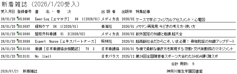新着雑誌のお知らせ(2026/1/20受入)