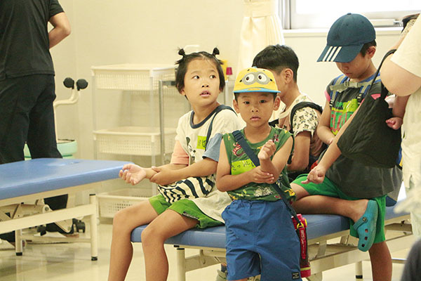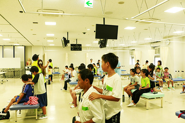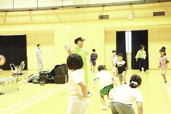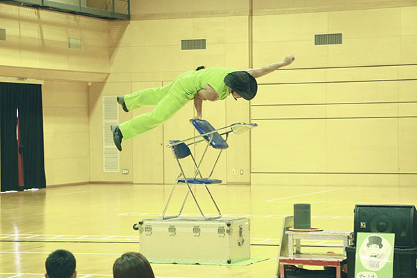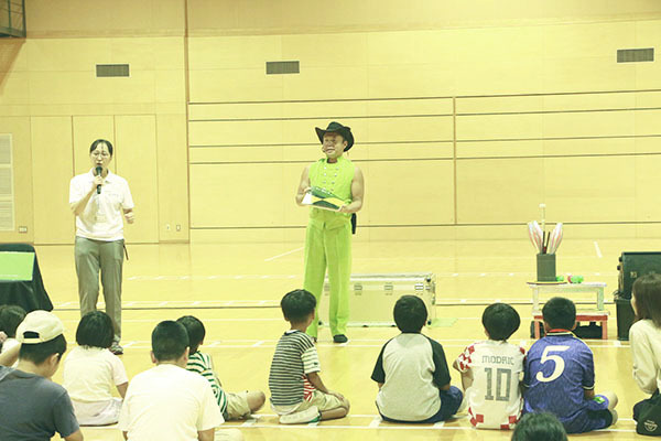 そんな思いから、8/8(金)に、本校の多目的ホールにて、「小学生対象 大道芸&ツボ・かたたたき体験」を初開催しました。