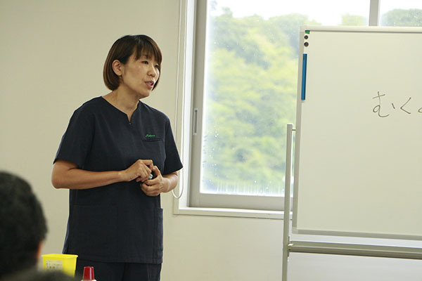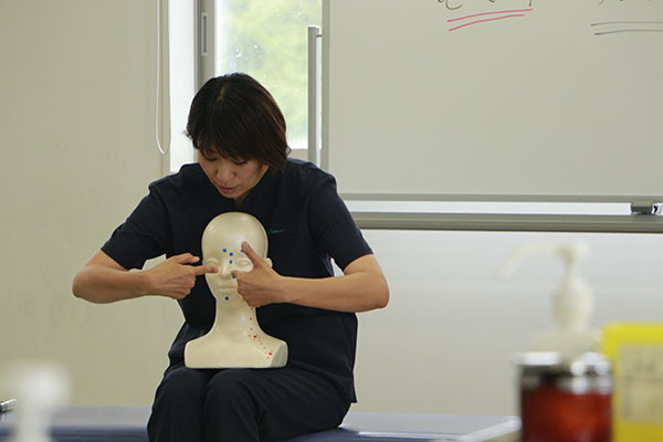講師は、小児から大人まで日々施術されているセラビストで、鍼灸マッサージ師の 津田 美奈子先生。本校の卒業生で、美容はもちろん、幅広い分野で活躍されています。